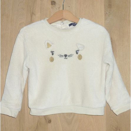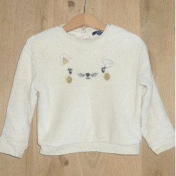 Sweat tout doux de marque KIABI en excellent état, couleur crème, orné d'une animation ludique.