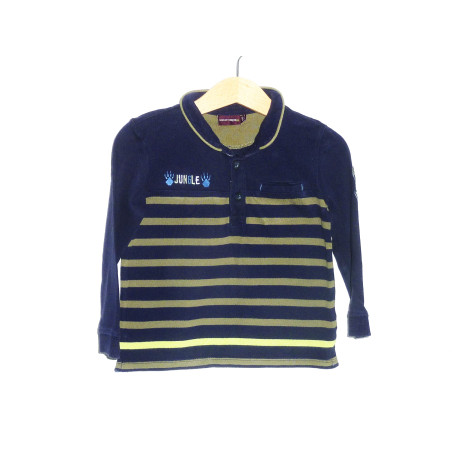 Polo en maille piquée, de marque SERGENT MAJOR en excellent état, noir et kaki à rayures.