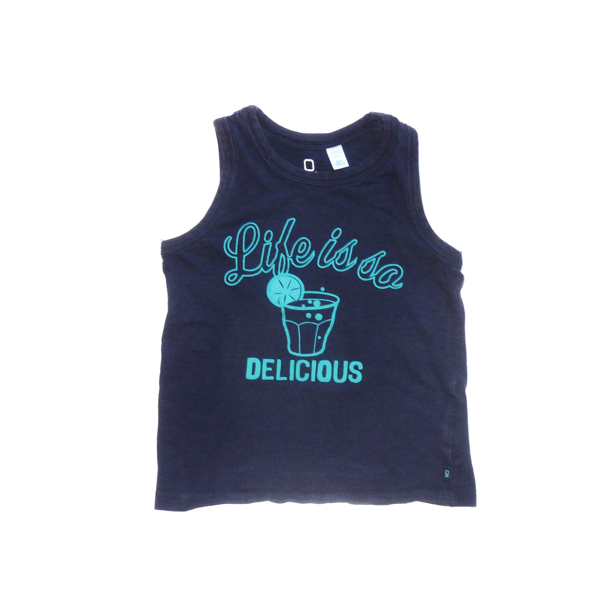 Débardeur de marque OKAIDI en excellent état, inscription couleur émeraude sur fond marine.