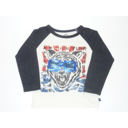 Haut de marque COMPAGNIE DES PETITS en excellent état, couleur crème, orné d'une animation, manches grises.