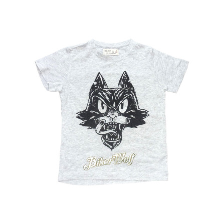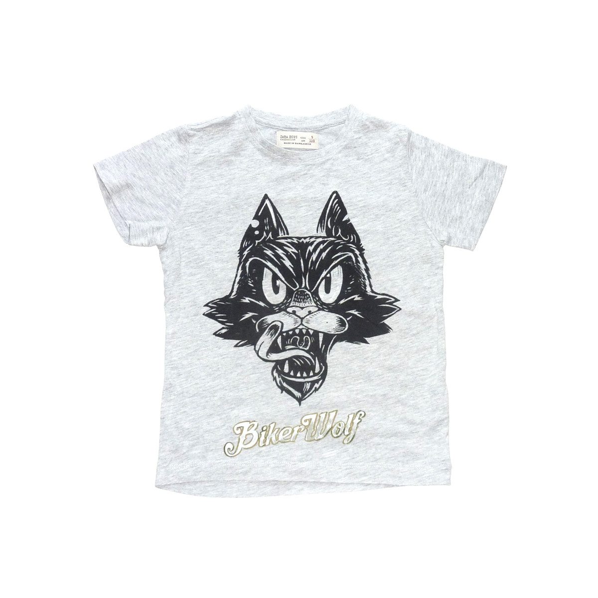 Tee shirt de marque Zara en excellent état, gris, orné d'une animation ludique noire.