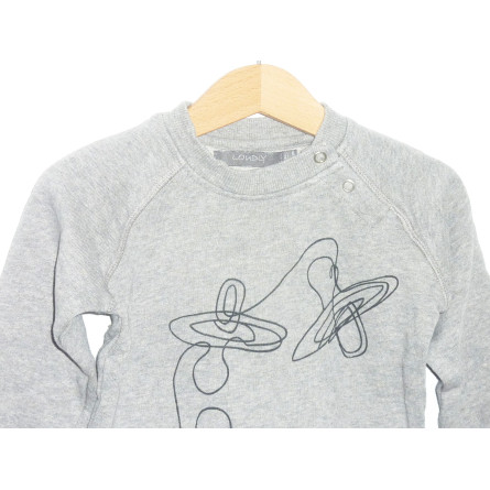 Sweat de marque LOUDLY en état excellent, gris, orné d'une animation noire. Encolure fermée par pressions.