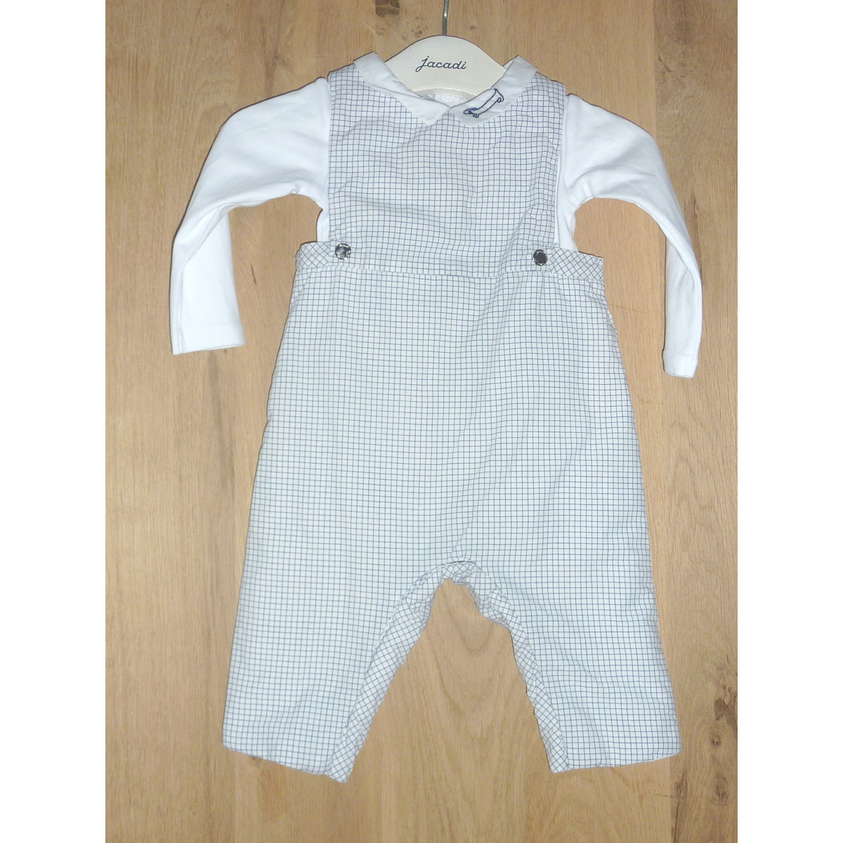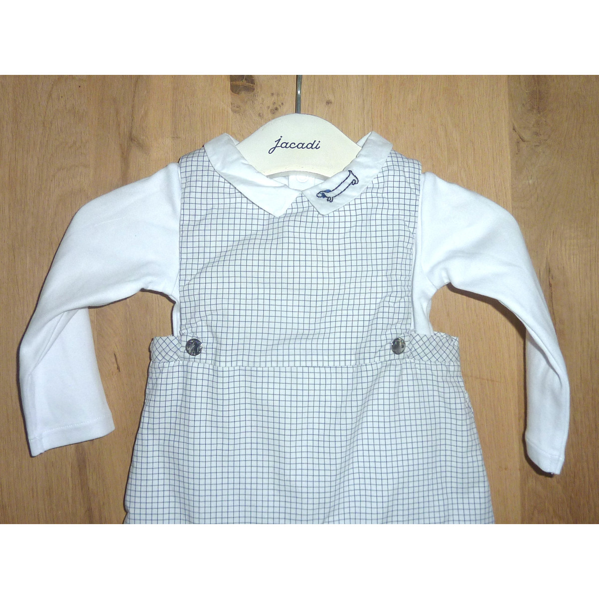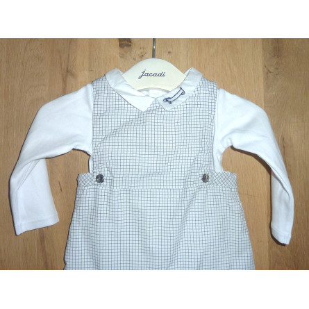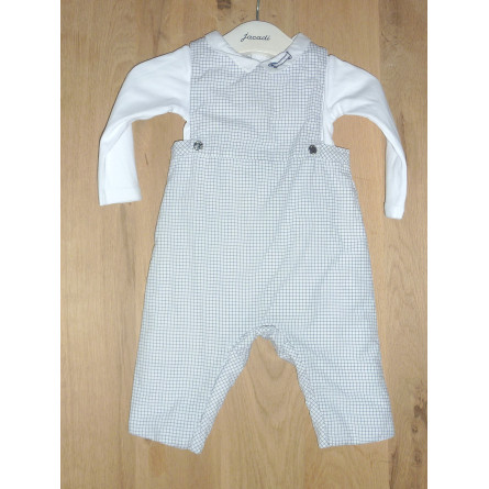 Ensemble de marque JACADI en état excellent, composé d'une salopette doublée à carreaux gris et du body blanc à col chic.