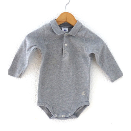 Body à col, en coton, de marque PETIT BATEAU en état excellent, de couleur grise.