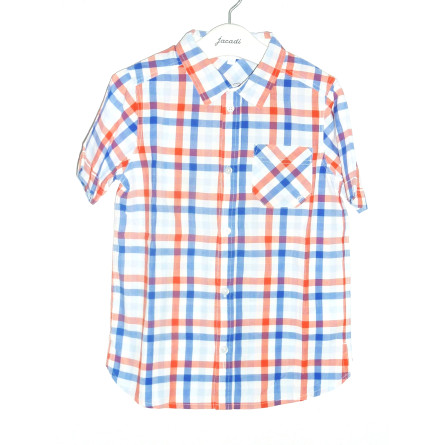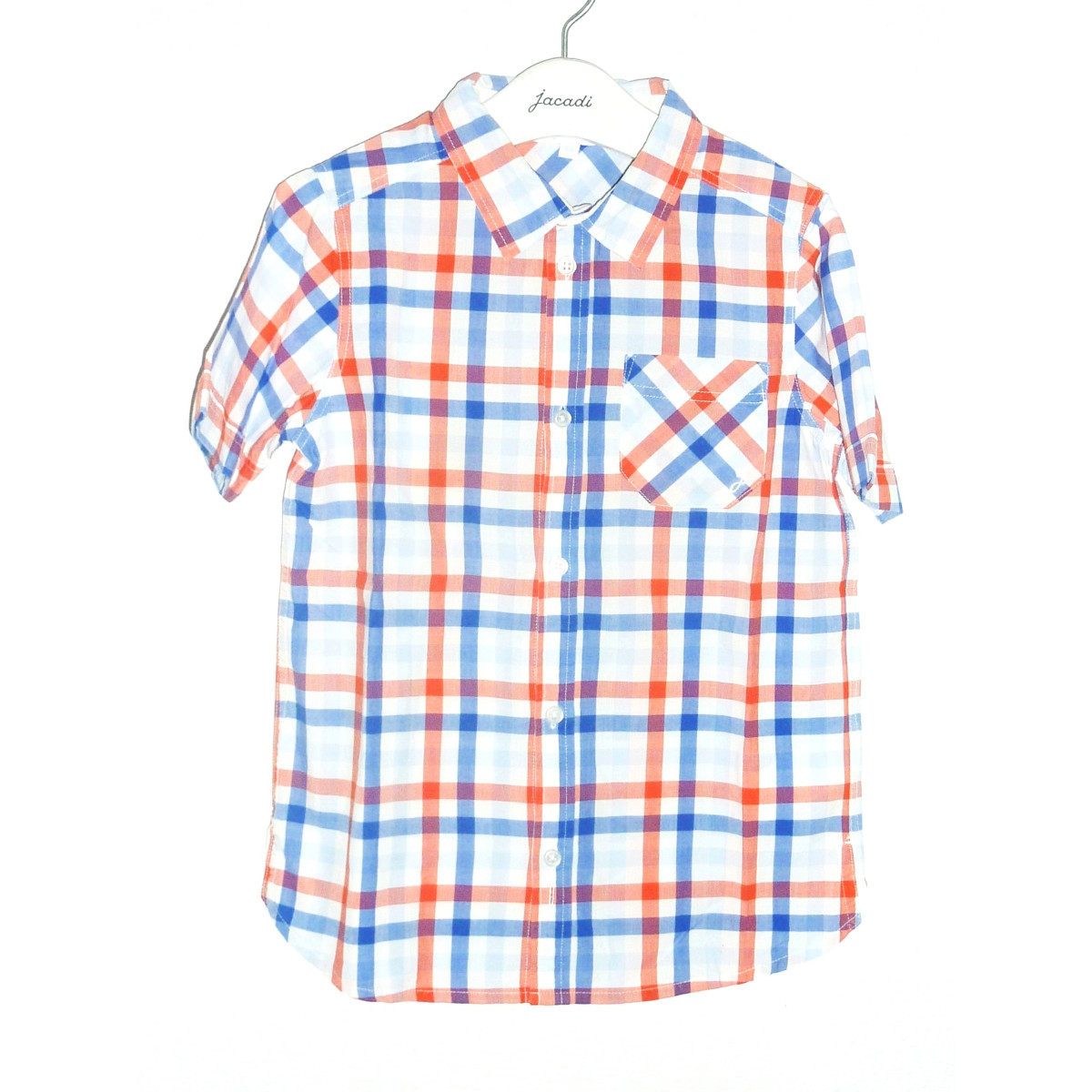 Chemise de marque JACADI en état neuf, imprimé à carreaux bleus et oranges.