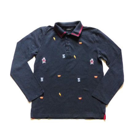 Polo de marque IKKS en très bon état, marine, en maille piquée, orné de broderies.