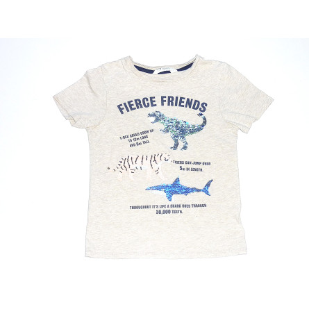 Tee shirt de marque HM, en excellent état, couleur beige chiné, orné d'un motif magique à sequins.