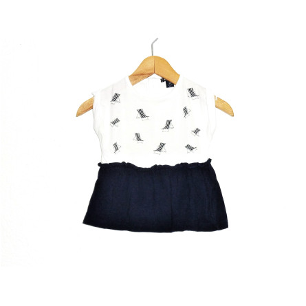 Ensemble en très bon état de marque KIABI, composé d'un jegging rose buvard (taille élastique) associé à la tunique blanche et marine, imprimé irisé.
