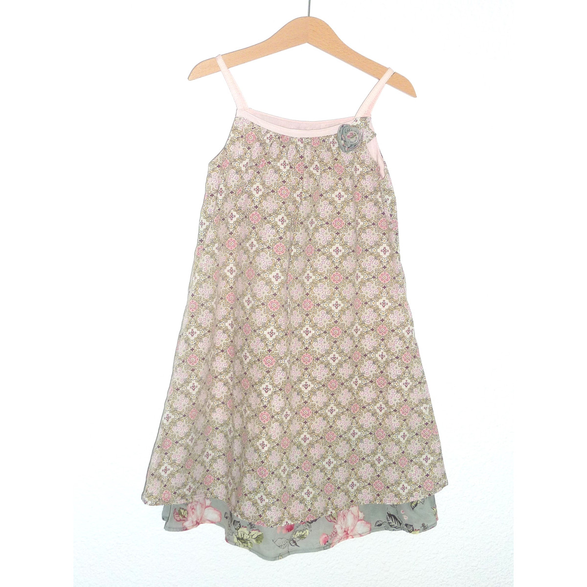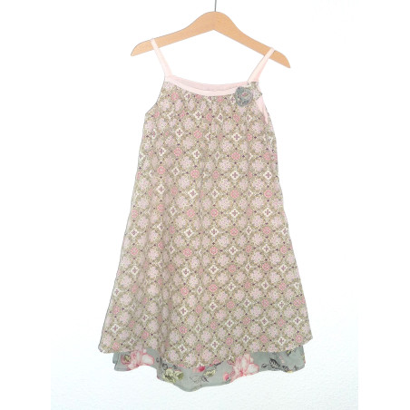 Robe de marque kenzo kids en état excellent, imprimé fleuri aux allures vintage, beige et rose sur fond couleur nougat.