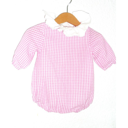 Barboteuse made in France en excellent état, imprimé vichy rose, ornée d'un petit col, un modèle délicieusement retro.