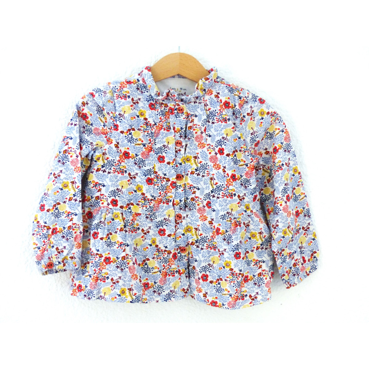 Blouse en velours finement côtelé, de marque SERGENT MAJOR en état excellent, imprimé fleuri sur fond blanc.