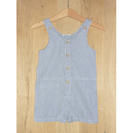 Salopette de marque BOUTCHOU en état excellent, rayée, bleue et blanche, 100% coton