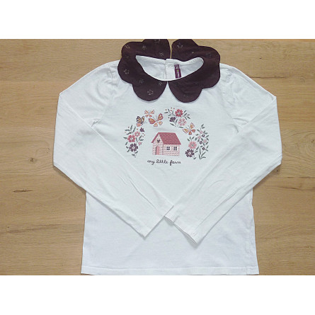 Haut de marque SERGENT MAJOR en excellent état, couleur crème, orné d'une animation et d'un col pétale couleur prune.