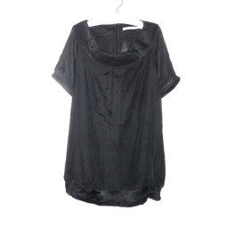 Tunique fluide de grossesse noire en soie. Chic et idéale pour les fêtes, la tunique offre un look moderne aux futures mamans en recherche de style et elle se pare d'une ceinture élastiquée.