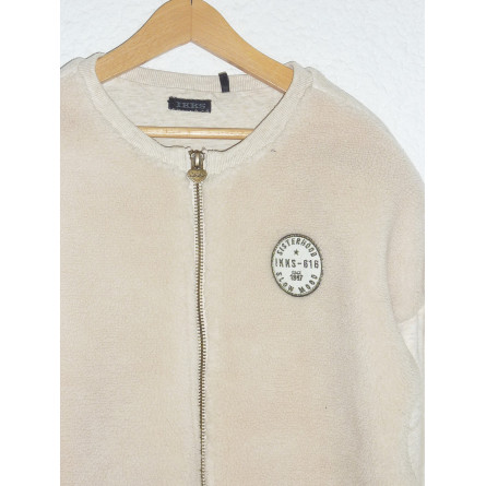 Veste beige en état parfait de marque IKKS, doublée, effet mouton, fermeture zippée. Hyper stylée !