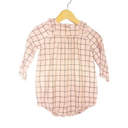 Barboteuse de marque BOUTCHOU, en état excellent. Rose à carreaux, volantée. On aime son look vintage.