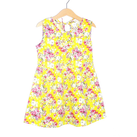 Robe en coton léger, imprimé fleuri rose et vert sur fond jaune vif ! Etat excellent
