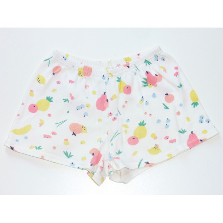 Le petit short fluide en coton de marque PETIT BATEAU en excellent état, imprimé pastel fruité sur fond couleur blanc. Taille élastique.