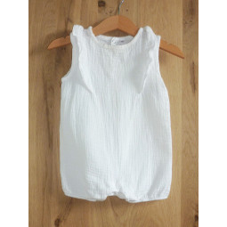 Barboteuse mixte en très bon état en gaze de coton, couleur chantilly.