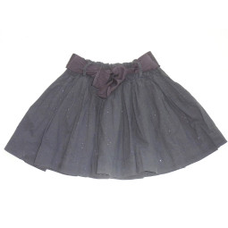 Jupe en coton de marque CYRILLUS en excellent état, imprimé à pois irisés sur fond couleur gris. Ceinture élastique.