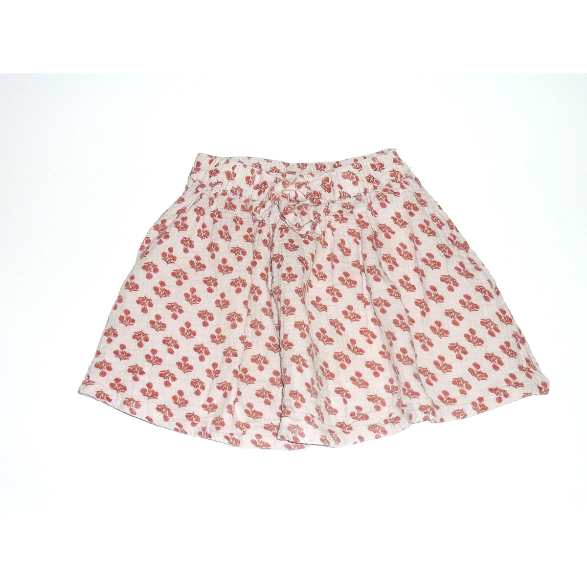 Jupe en gaze de coton de marque TAO en excellent état, imprimé couleur paprika sur fond couleur lait. Ceinture élastique.