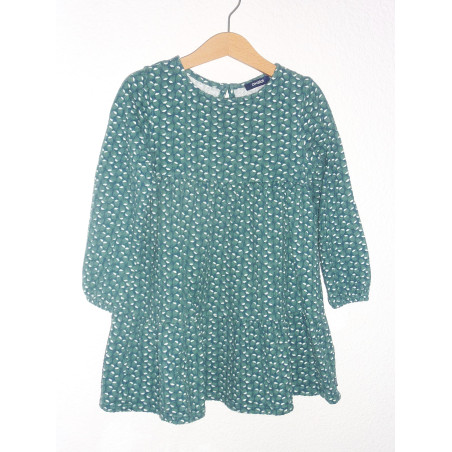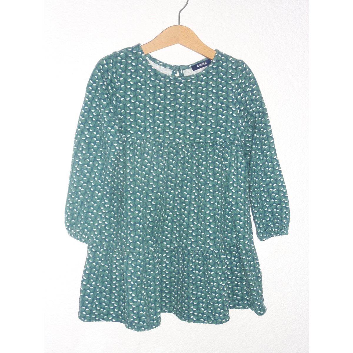 Robe de marque OKAIDI en excellent état, imprimé couleur crème sur fond vert bouteille.