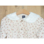 Robe de marque KIABI en état excellent, doublée, en gaze de coton, ornée d'un petit col brodé, imprimé fleuri couleur camel sur fond beige.