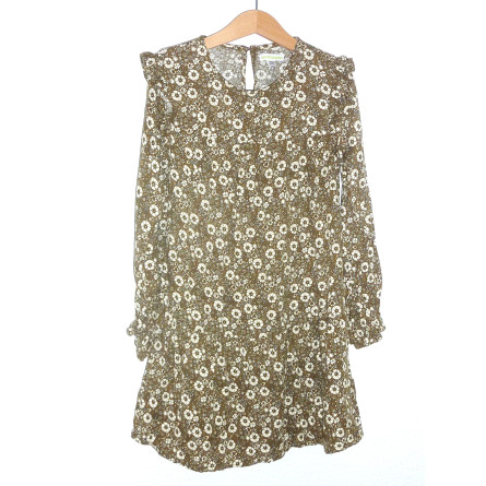 Robe de marque VERT BAUDET, imprimé fleuri crème sur fond couleur gold. Etat excellent.
