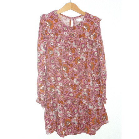 Robe de marque VERT BAUDET, imprimé fleuri crème et moutarde sur fond couleur prune. Etat excellent.