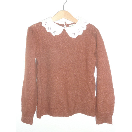 Pull de marque Vert Baudet en très bon état couleur paprika, orné d'un joli col brodé.