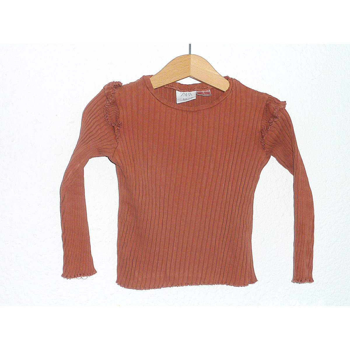Haut volanté de marque Zara en état excellent, finement côtelé, bas et poignets bouclés, couleur paprika.
