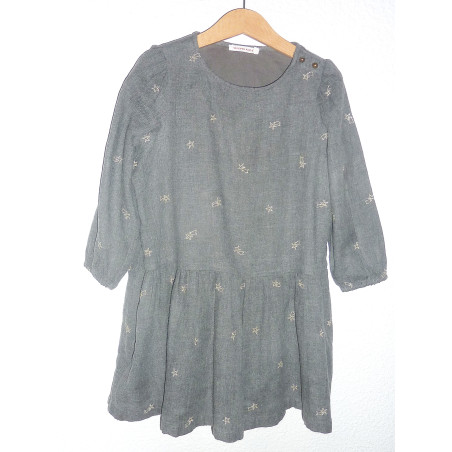 Robe en excellent état de marque MONOPRIX Kids, imprimé argenté sur fond couleur gris fumé.