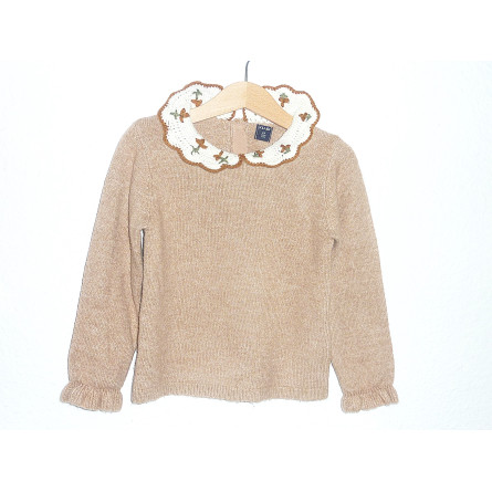 Pull de marque KIABI en état excellent, couleur noisette, orné d'un joli col tricoté.