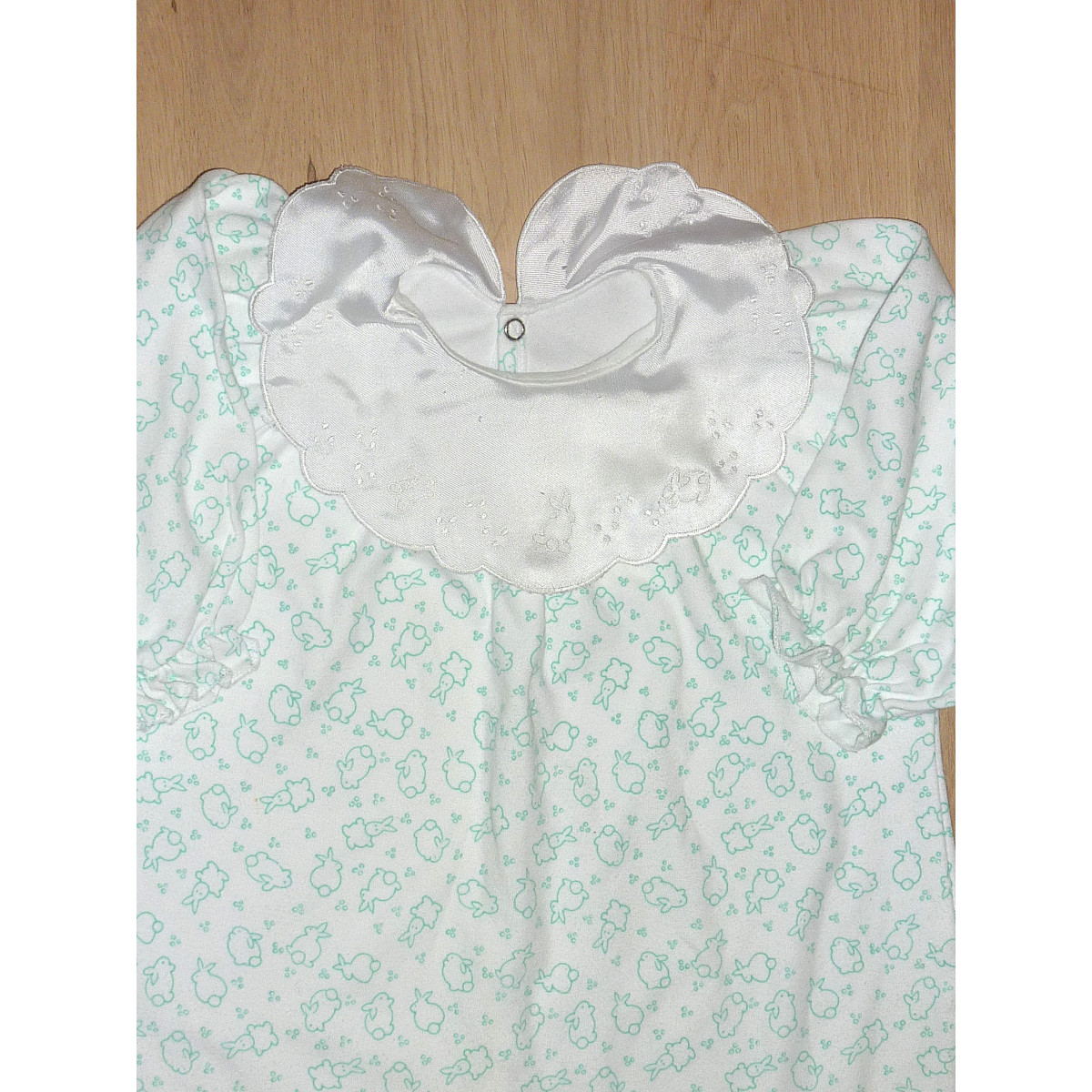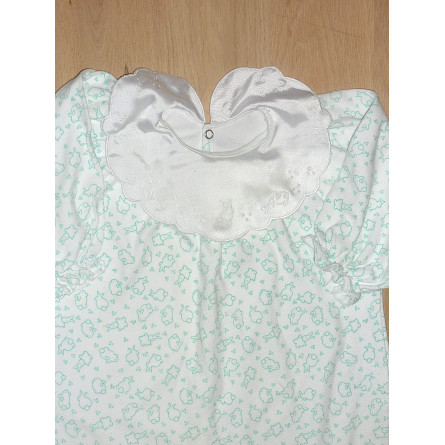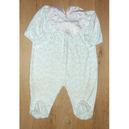 Pyjama vintage en coton, en état excellent. Imprimé couleur menthe sur fond blanc, orné d'un petit col brodé.