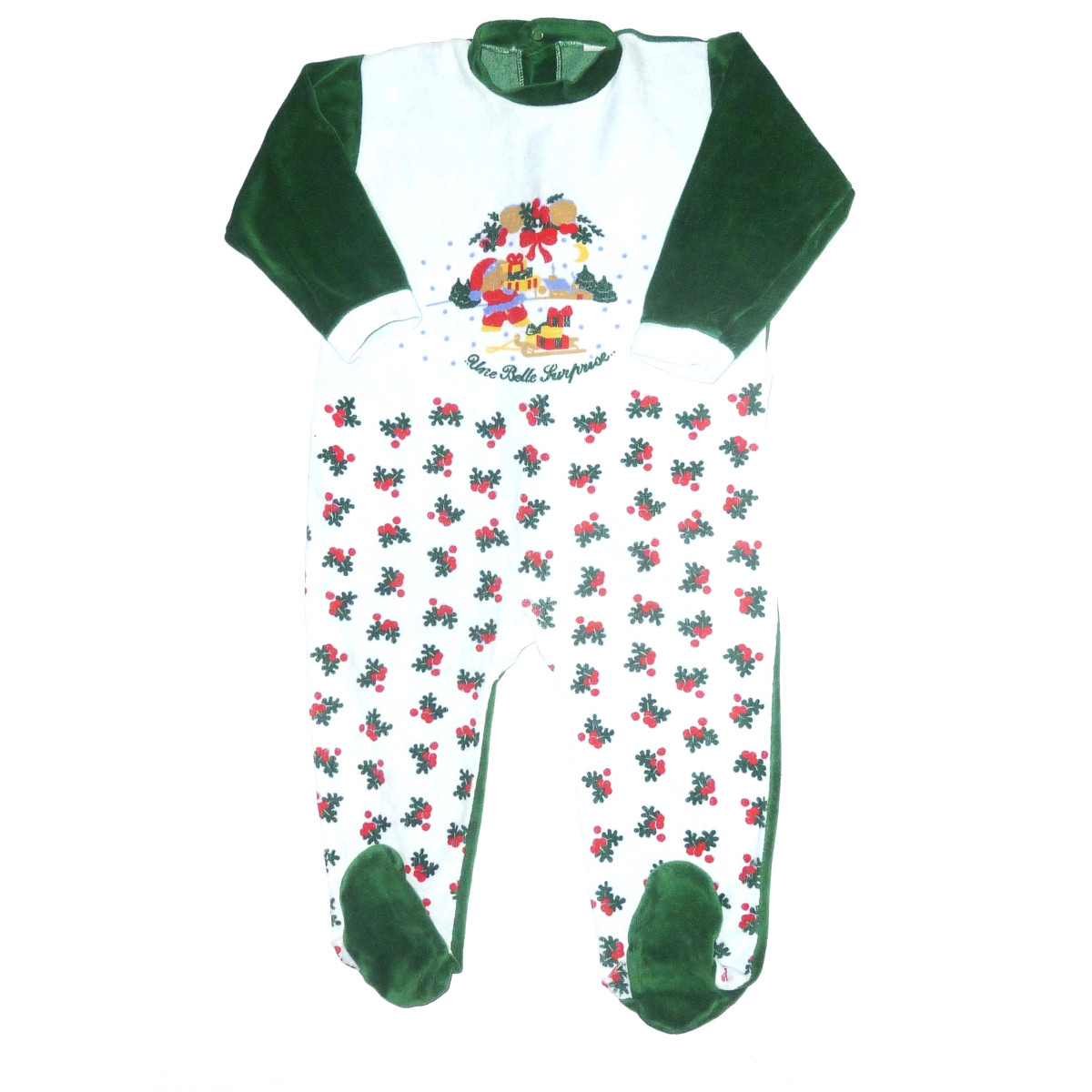 Pyjama en polaire tout doux, VINTAGE en parfait état, vert et rouge, aux couleurs de Noël.