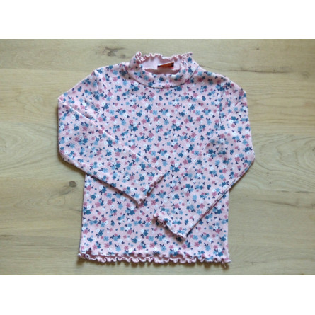 Haut de marque TAO, en coton finement côtelé, imprimé fleuri sur fond rose. Etat excellent