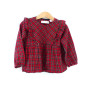 Blouse de marque Zara en état excellent, volantée, imprimé rouge et vert.