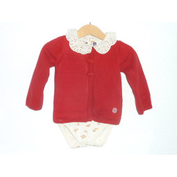 Ensemble de marque SERGENT MAJOR, en excellent état, composé d'un body imprimé, orné d'un joli petit col associé au gilet rouge.