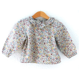 Blouse à col de marque VERT BAUDET, en excellent état, toute prête pour une seconde vie. Imprimé fleuri multicolore.