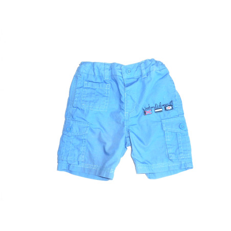 Short en état excellent, de marque WEEK END A LA MER, d'un joli bleu lumineux, orné de petites poches, de broderies et d'une ceinture ajustable.