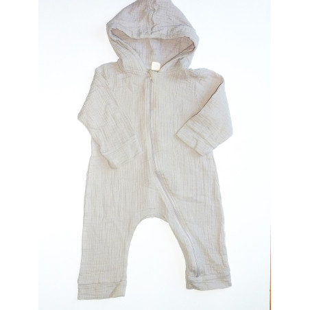 Combinaison en gaze de coton, couleur eucalyptus, fermeture zippée, à capuche, on craque pour son look de dinosaure !