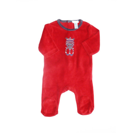 Pyjama d'occasion en excellent état de marque OBAIBI, en velours tout doux, rouge, orné d'un motif gris.