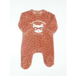 Pyjama d'occasion en excellent état de marque KIABI, en velours tout doux, couleur brique, imprimé et motif animalier.