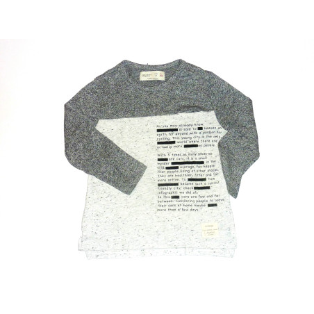 Haut en excellent état de marque ZARA couleur gris chiné orné d'une inscription noire.