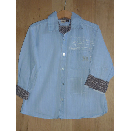 Chemise en excellent état de marque IKKS. Imprimé bleu rayé, revers sur les poignets, petite poche.