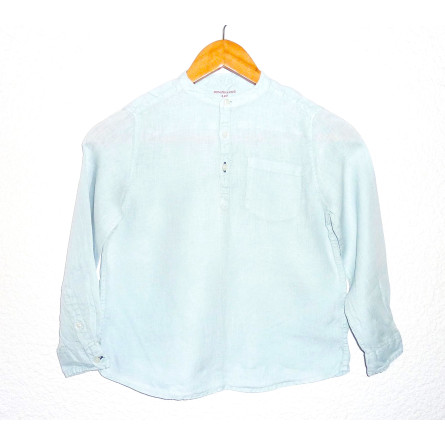 Chemise en parfait état de marque MONOPRIX KIDS, bleue pastel, en lin, col mao boutonné, on craque pour son petit style chic.