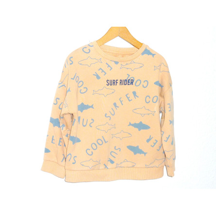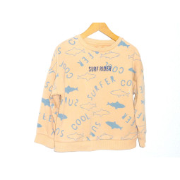 Sweat KIABI en excellent état, imprimé bleu sur fond couleur saumon.