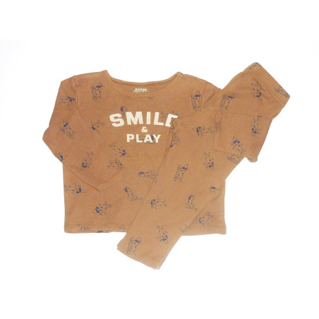 Pyjama en coton de marque KIABI eco conception en excellent état, imprimé animalier sur fond camel.
