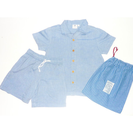 Pyjama de marque CYRILLUS en excellent état, bleu, composé d'un short taille élastique et de la petite chemise.