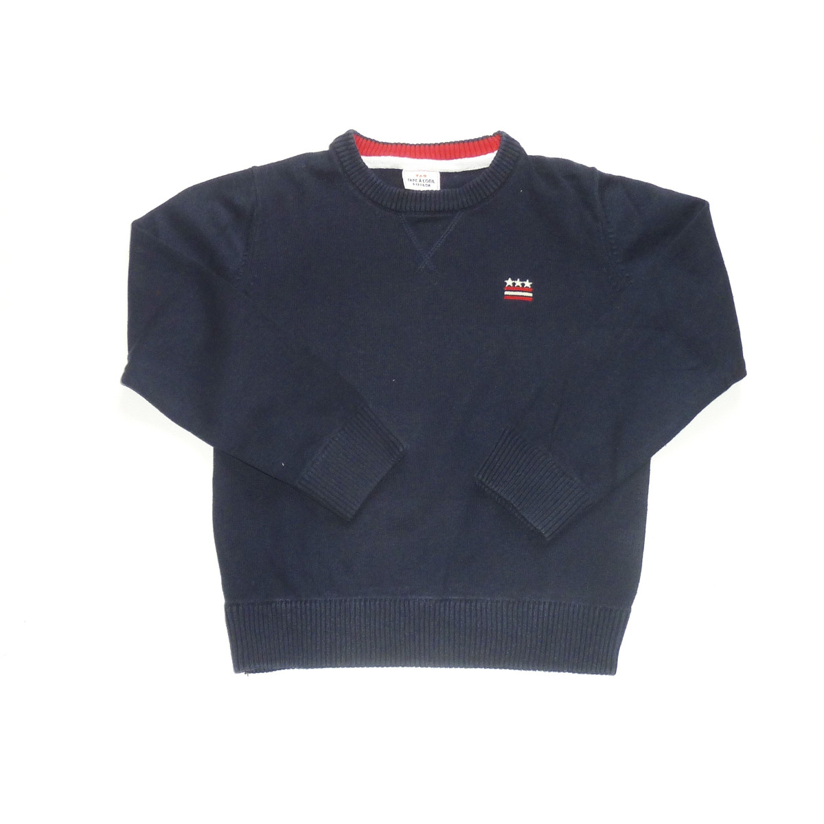 Pull fin, en coton tricoté, de marque TAO, en très bon état, couleur marine orné d'une petite broderie rouge.